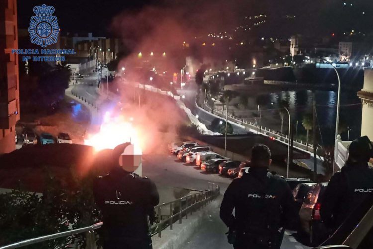 Agentes de la Policía Nacional de la Jefatura Superior de Policía de Ceuta han detenido en la pasada madrugada a un individuo como presunto autor de un delito de incendio al provocar la quema de un total de 9 contenedores esta pasada noche, aunque en total durante la noche se han calcinado 17 contenedores.