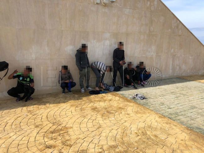 Desde el Hércules al agua. Así ha sorprendido la Policía Portuaria a varios menores marroquíes que habían decidido subirse a la mítica estatua de Ginés Serrán Pagán, ubicada en la bocana del puerto, para arrojarse al mar.