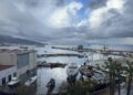 Un barquito blanco de pesca con la borda roja y la caseta cuadrada sale a faenar. Son las 8.30 de la mañana. Cielo y mar se funden en un gris perla oscuro. La superficie acuosa del puerto se ve completamente lisa, apenas un sutil escalofrío en su lomo irisado de reflejos. El urano o sma, mullido de nubes gomosas, deja escapar un filo de luz blanca que se extiende sobre el perfil de la península. Ya sale el Balearia dejando en la bocana su estela blanquiceleste, mientras que por estribor entra el ferry de Trasmediterránea y eleva su vuelo un helicóptero azul con destino a Málaga. Es viernes y el tráfico intenso. En los astilleros del muelle Alfau tres hombres trajinan en la cubierta de un barco de casco rojo descascarillado. Un muelle comprimido y equidistante entre el Parque Juan Carlos I y el Parque San Amaro; entre la espada y la cruz, el comercio. En el muelle dos de los hombres llevan mono blanco y el otro un chaleco amarillo fosforescente. Los trabajos en los astilleros no parecen acumularse o, al menos, no transmiten esa fiebre fabril. A su vera la antigua fábrica de harina de 1957 suspira por sus ventanales rotos, quizás añorando nuevos usos.