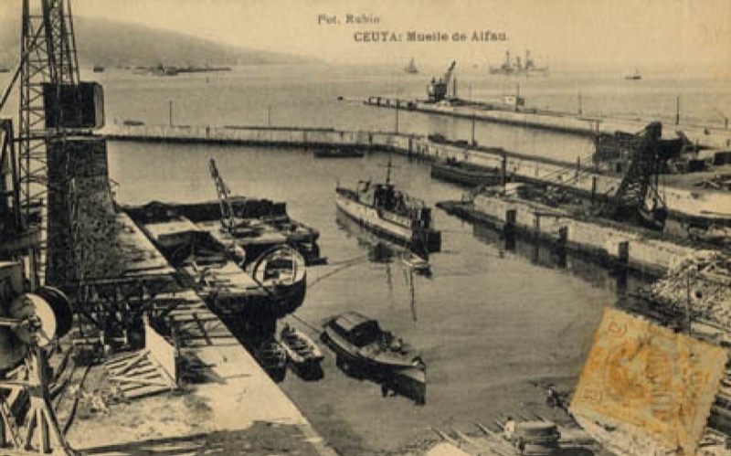 El muelle Alfau era, sobre todo, un muelle pesquero y de comercio, una lonja -en tiempos remotos también de oro, marfil, cautivos y esclavos-, una terminal para entrada y salida de barcos correos que hacían la ruta Algeciras-Ceuta, varadero para la reparación, construcción y botadura de veleros como el Rosendo, y, posteriormente, punto logístico y estratégico de grúas para la construcción y el suministro de carbón a los barcos que cruzaban El Estrecho. En sus proximidades estaban el cuartel de ingenieros o de las Heras, el hospital de la Cruz Roja -sobre las antiguas Balsas-, la fábrica de harina... A diferencia de hoy en día, en el que no podemos pasar al interior del embarcadero ni pasear por sus dársenas por la valla que le constriñe, durante décadas el Muelle Alfau o Muelle del Comercio fue un lugar de paseo; los habitantes de Ceuta acudían allí para observar la pesca, el movimiento de embarcaciones y las tareas de mantenimiento. Tenemos evidencias gráficas del primer cuarto del siglo XX gracias a tarjetas postales -como las impresas por los suizos Hauser y Menet- y a las fotografías de Enrique Jarper Ros, José Juan Gutiérrez Álvarez y otros.