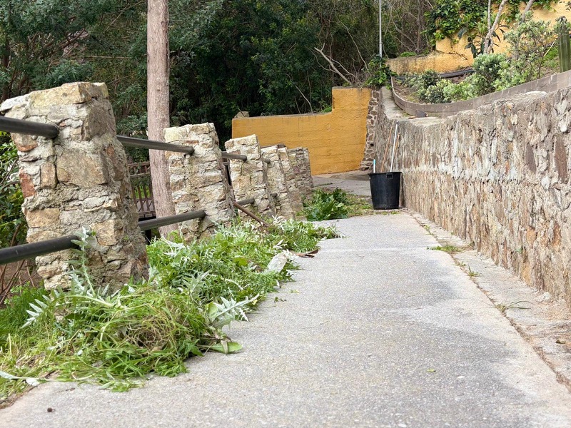 También podían observarse varios grupos de trabajo distribuidos por distintas áreas del parque, realizando labores de acondicionamiento, adecuación de jardines, retirada de restos arrastrados por el temporal y poda de ramas que invaden los caminos.