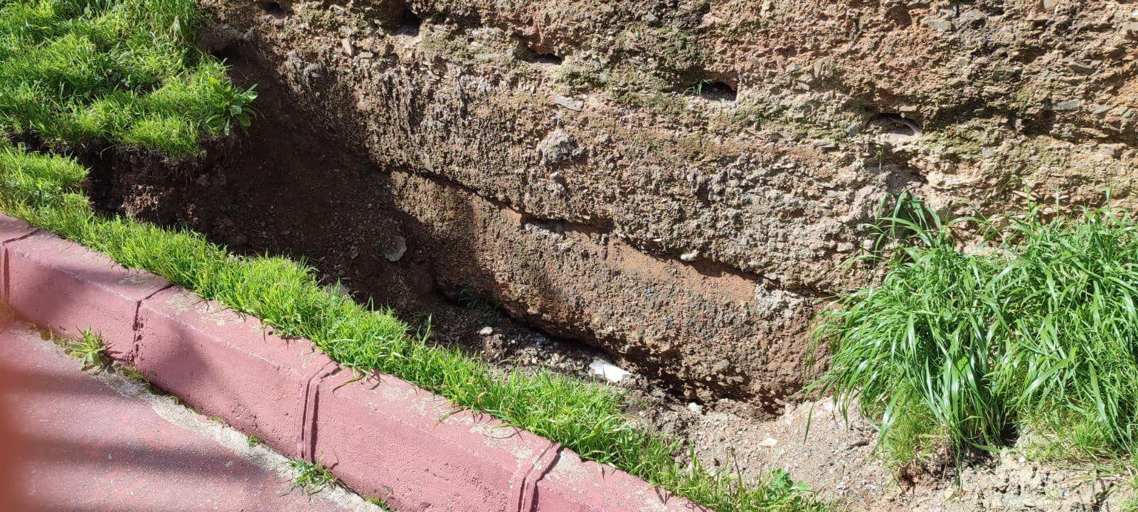 Socavón junto a la muralla y riesgo estructural