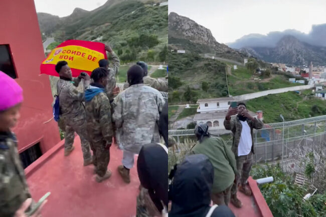 Posan con banderas de España y celebran la aproximación de compatriotas al otro lado del perímetro fronterizo con Marruecos. Son imágenes que se están viralizando en grabaciones compartidas en TikTok, pero que a su vez generan preocupación en el seno de las propias fuerzas armadas.
