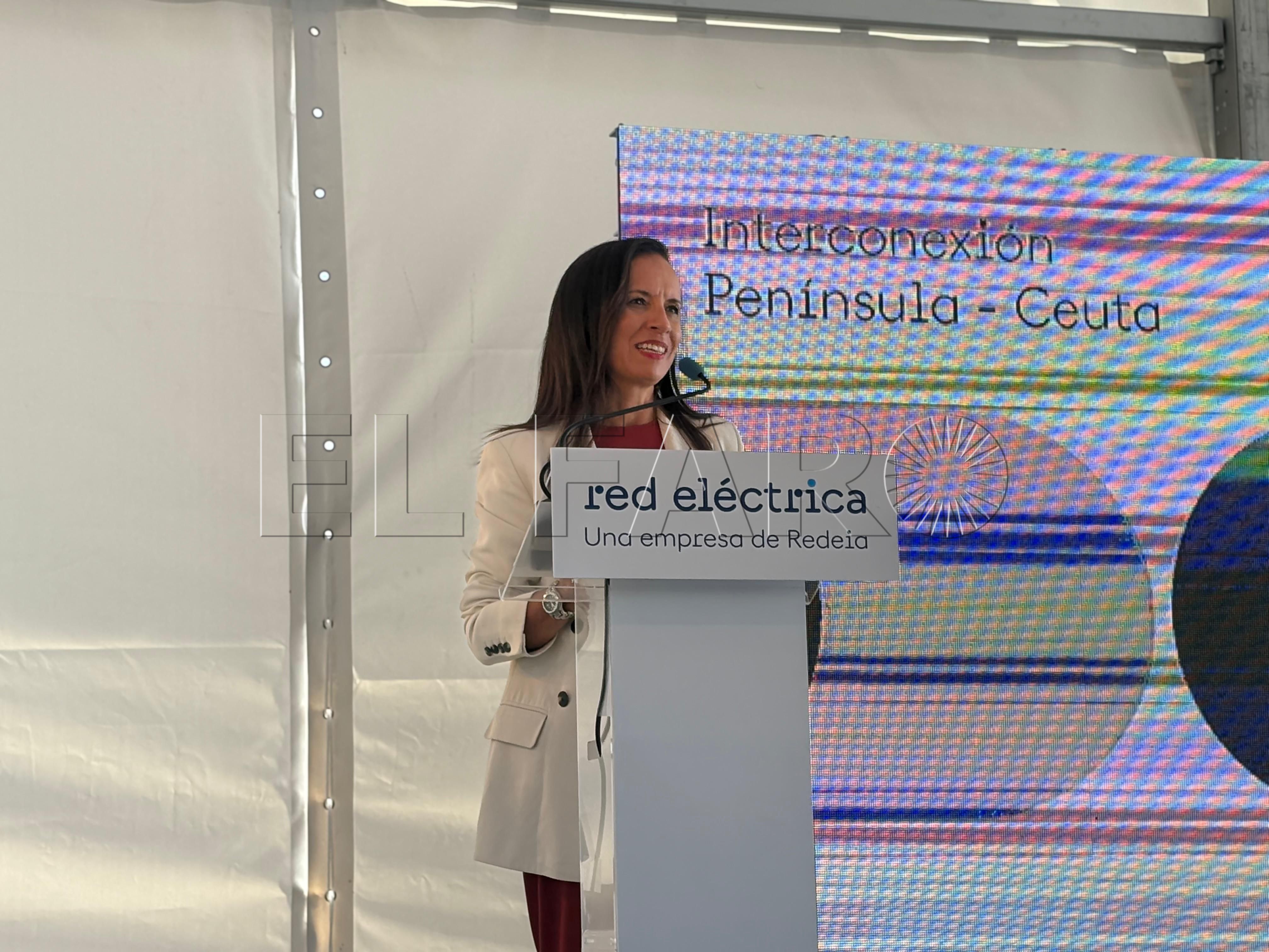 Beatriz Corredor, presidenta de Red Eléctrica España, ha llegado este lunes a Ceuta con motivo de la finalización del tendido del primer cable submarino que enlaza la Península con la ciudad autónoma.