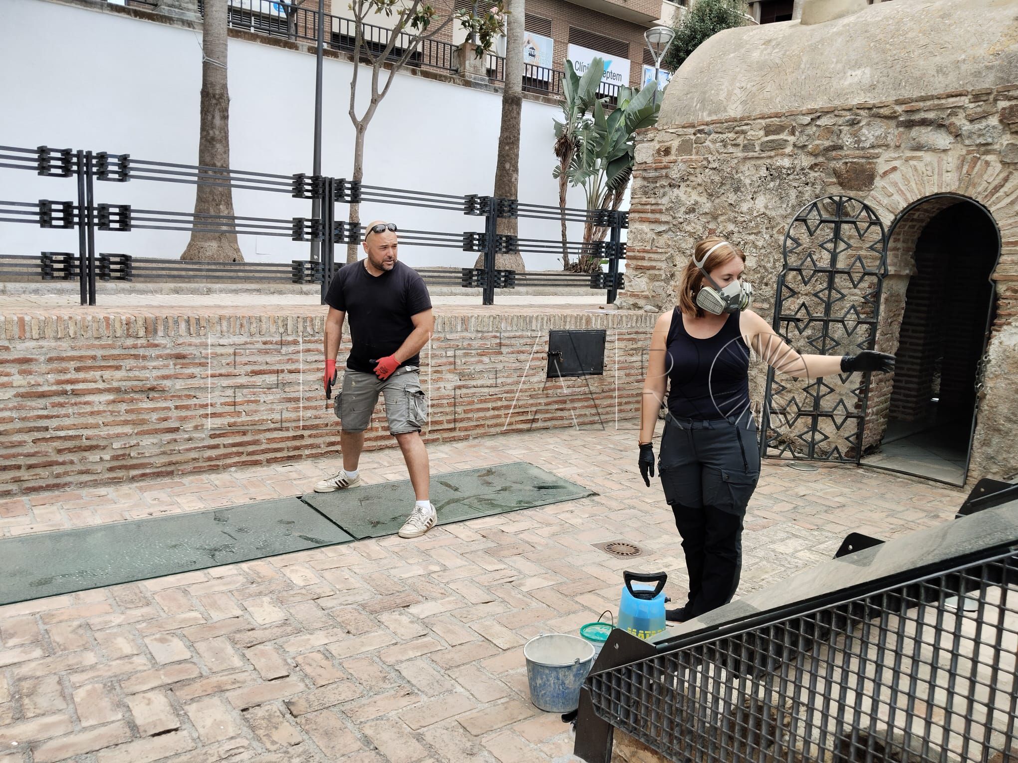 Un ejemplo de este tipo de acciones es la que tienen prevista en los Baños Árabes, escenario en el que intervinieron este lunes. Una de las piezas que conforman las letrinas está en estado débil.