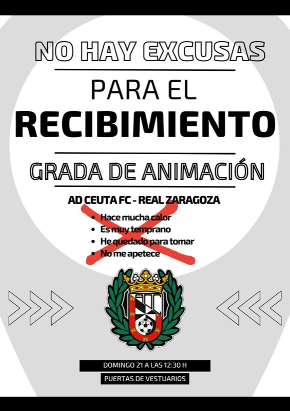 Es por eso que este domingo se realizará un recibimiento por parte de los hinchas de la AD Ceuta. Las redes sociales de los seguidores del Ceuta ya están en funcionamiento y quieren llegar a todos los hinchas posibles este mensaje: a las 12:30 horas en la puerta de vestuarios.