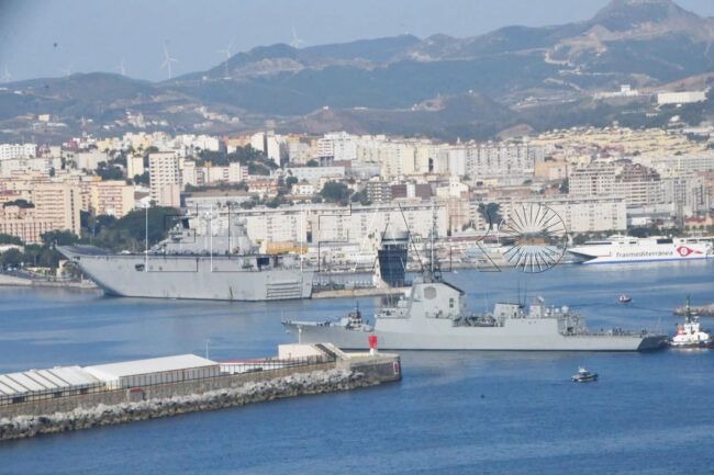 Pasadas las 8.15 horas de este sábado ha llegado a Ceuta el buque Juan Carlos I ayudado por dos remolcadores. Poco después ha hecho entrada en el Muelle de España, la fragata Blas de Lezo en donde marcha la princesa Leonor junto a más compañeros de formación militar.