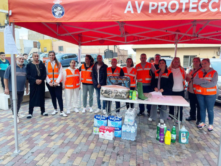 Este jueves quisieron colaborar poniendo en marcha una recogida para lo que instalaron un puesto en el zoco. Contaron con apoyo de Protección Civil para el posterior traslado de todo lo que se ha recogido.