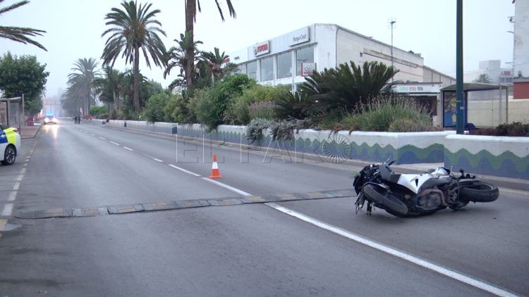 El joven fue detenido tras atropellar a un ciudadano marroquí que cruzaba el paso de peatones, siendo el golpe tan fuerte que la víctima fue desplazada varios metros. El detenido siguió su recorrido hasta caer a la altura de la Casa del Mar tras chocar contra una mediana.