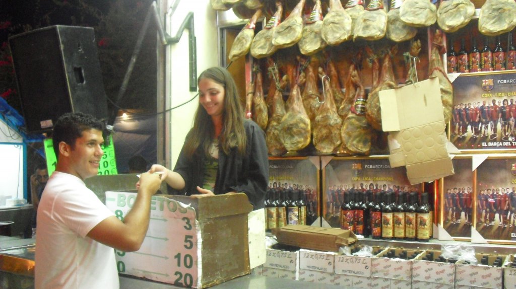 Los premios que se pueden conseguir son un jamón, la típica barra de pan gigante, la botella o la bota de vino o un cuadro de los equipos de fútbol. Liliana Mirando es una de las trabajadoras encargadas de la tómbola, explicaba que cualquier premio se puede ganar, que no hay truco, pero que todo cuesta, “todo cuesta si quieres llevarte uno de nuestros famosos jamones de los Belloteros de la Sierra hay que pagarlo, comprar muchos boletos y seguro que te toca uno, aunque sí es verdad que pocas personas se lo llevan”.
