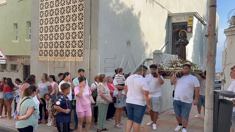 Aproximadamente a las 19:00 horas, poco antes de que comenzara la procesión, los vecinos se congregaron en la asociación de vecinos, ansiosos por ver la imagen de Santiago Apóstol una vez más en las calles del barrio.