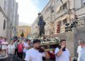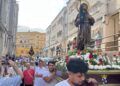 Mientras avanzaba por las calles, la imagen de Santiago Apóstol recibió la mirada respetuosa y llena de admiración de quienes la acompañaban.
