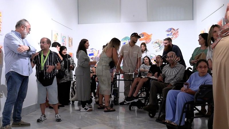 Formas y siluetas de tonos cálidos han dado la bienvenida a sus autores, sus familiares y visitantes que se han reunido este viernes para estrenar la colección. Como en años anteriores, este espacio pictórico es fruto del taller adaptado coordinado por el pintor Antonio San Martín.