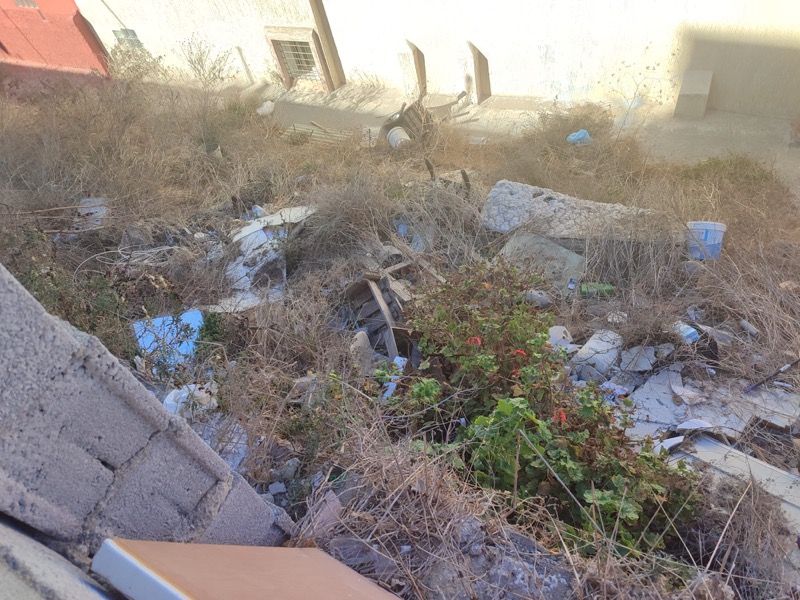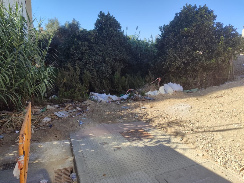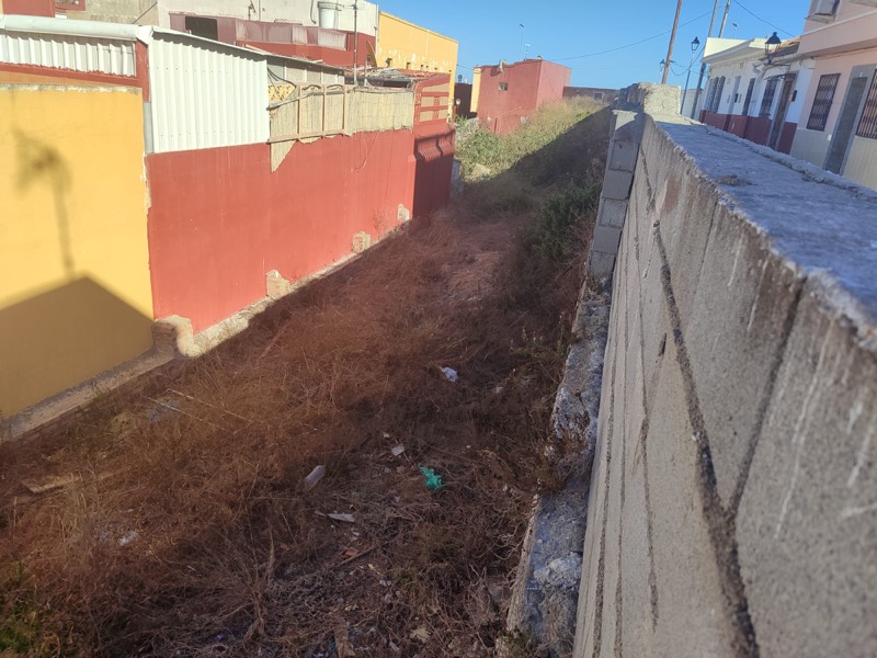 Otro de los problemas graves que sufre la barriada son los seis solares en condiciones higiénicas lamentables. Romero detalla que la respuesta habitual de la Administración es que antes deben localizar a los propietarios para notificarles, un procedimiento que se alarga sin dar una solución.