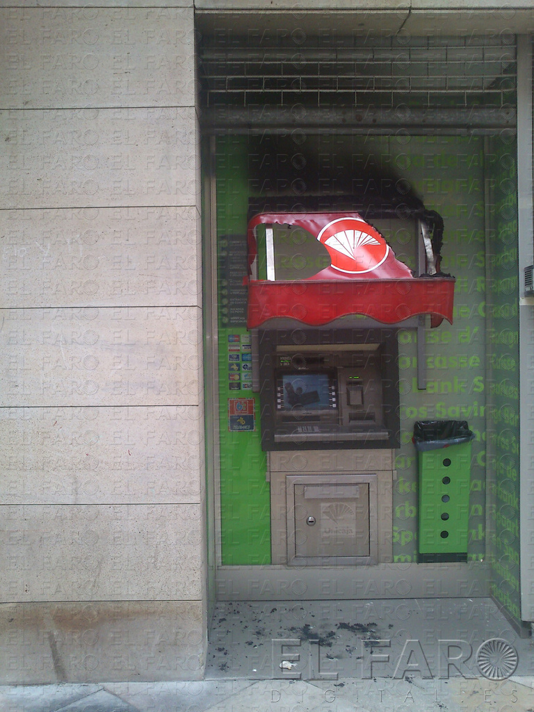 Durante la pasada noche se produjo la quema parcial de un cajero ubicado en plena calle Real, sin que se viera afectado el dispositivo en sí. No hubo que lamentar males mayores, quedando dicho acto encuadrado en una gamberrada provocada por no se sabe qué intereses. En la imagen el estado en el que quedó dicha instalación.