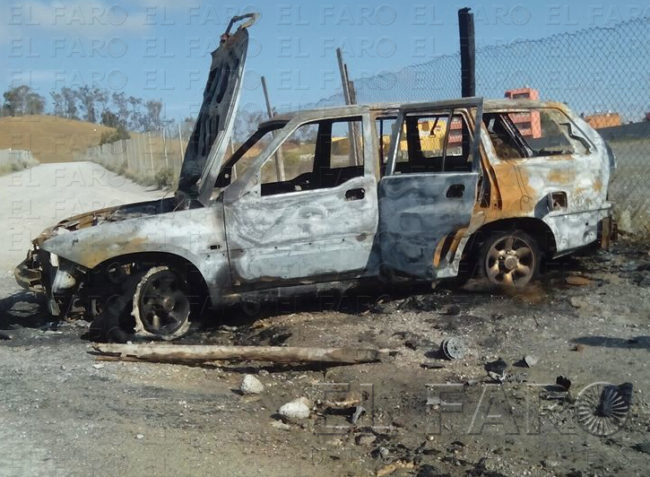 El vehículo que aparece en esta imagen cedida por los vecinos de la barriada del Príncipe fue quemado después de haber sido desplazado y colocado de una manera que bloqueaba el tránsito que conduce la calle Norte con la ITV. Después de controlar las llamas y ser sofocadas, varios hombres ayudaron a mover el coche para evitar que el vial afectado quedara intransitable. Esto no es una gamberrada.