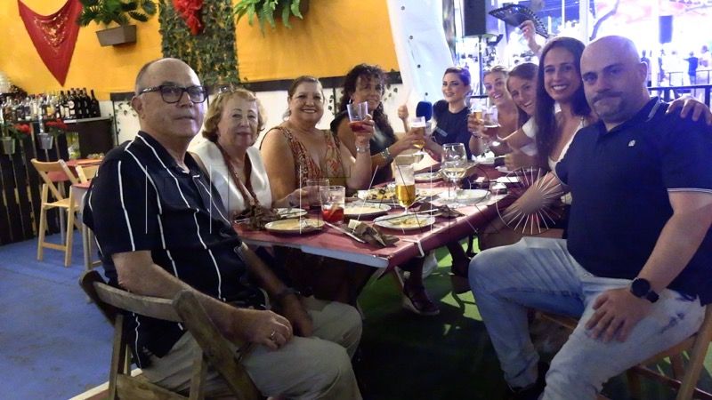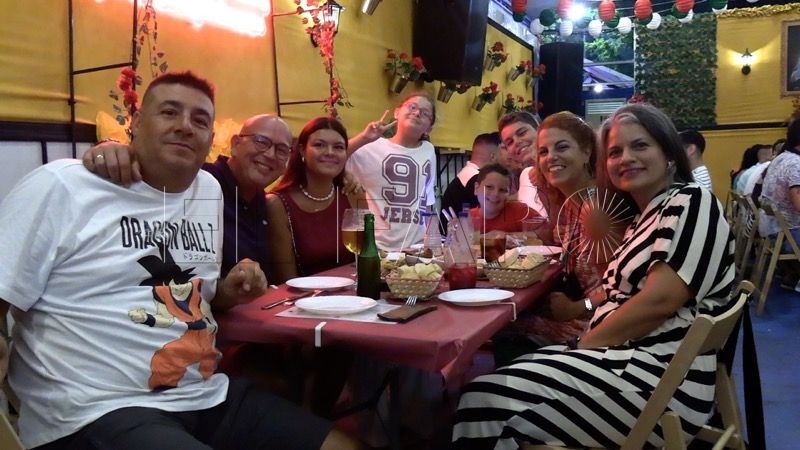 La racha ha continuado con una cumpleañera de 35 años, otro de 45 y una más rodeada de sobrinos, hermanos y amigos. Cada grupo compartía el mismo entusiasmo: buena comida, buena compañía y mucha música para terminar bailando. “El año pasado me rompí la muñeca de tanto bailar, este año espero que no”, nos ha contado una de ellas.