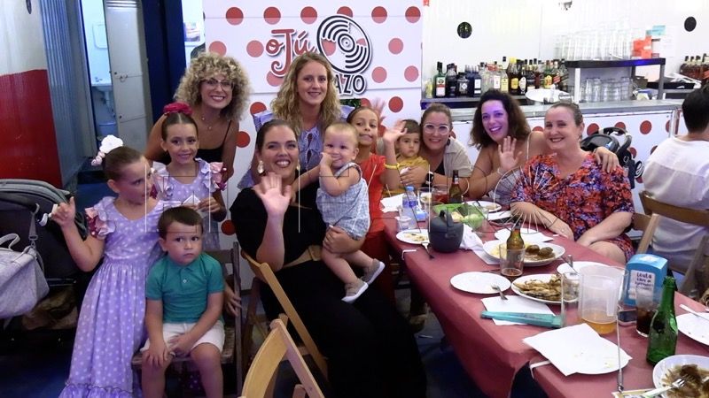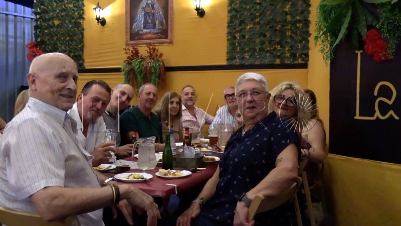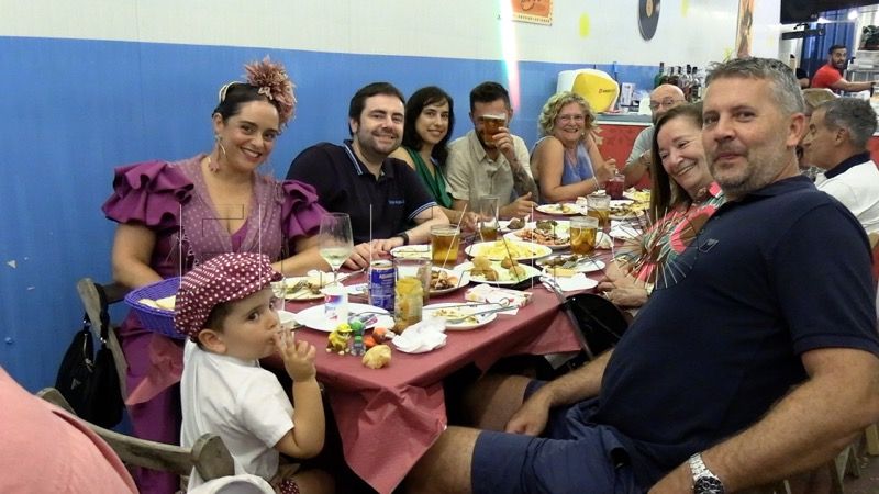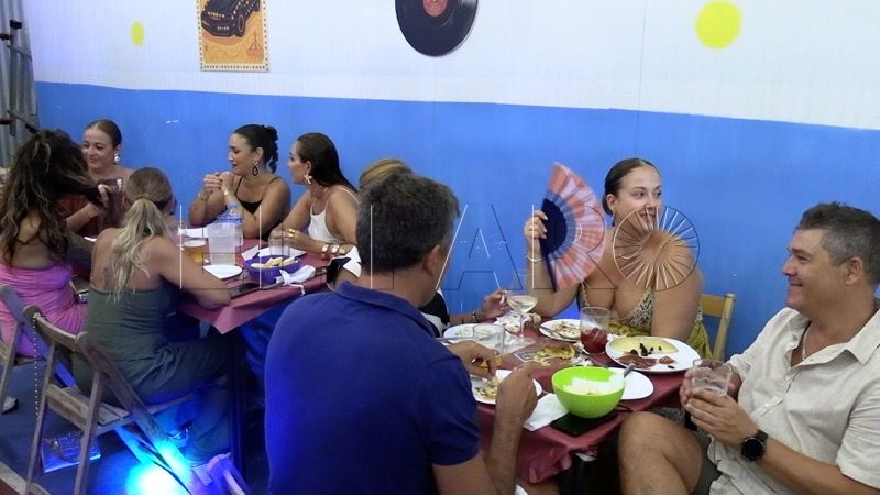 El recorrido ha comenzado con un descanso, sí, de parte del equipo de FaroTV. Con abanico en mano, debido al calor que, como todos los años, acompaña estas fechas, nos hemos sentado con una mesa familiar que derrochaba simpatía "por los cuatro “costaos".
