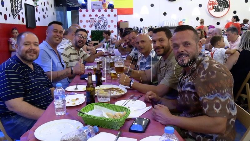 La cena en esta caseta ha sido un desfile de sabores. Tortilla con carrillada, bastoncitos de berenjena, croquetas de rabo de toro, tomate con melva, pinchitos, etc. Estos han sido algunos de los platos sobre las mesas. La tortilla “cubierta de carrillada” tenía una pinta increíble.