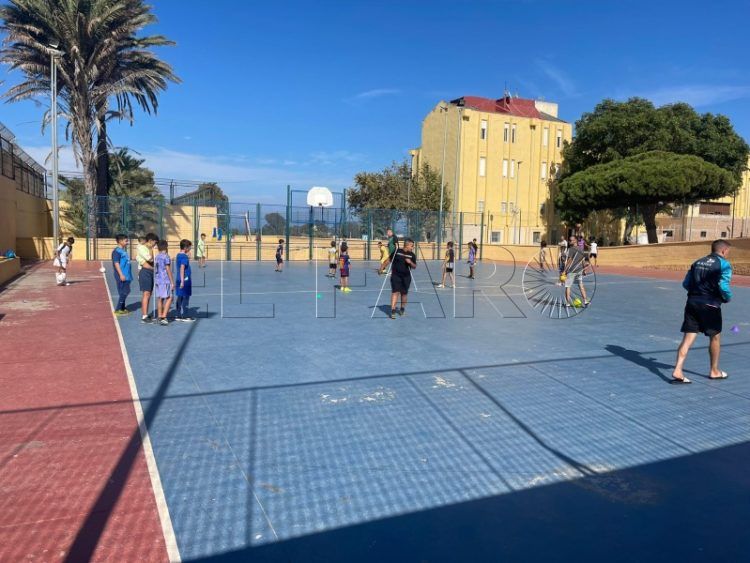 Este club de Ceuta tiene su escuela en esta pista situada en el corazón de la barriada por el que pasan a diario unos “80 niños, desde las categorías bases como prebenjamines hasta la mayoría de edad”.
