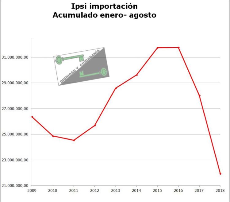 Una reducción que se inició en diciembre de 2016 y que se ha ido acelerando a lo largo de todo el año 2017 y continúa en este ejercicio. En comparación con el 2016 o el 2015 se ha dejado de ingresar más de 10 millones de euros, un tercio de las cantidades recaudadas en esa fecha, a este ritmo de caída. La formación localista alerta de que, siendo optimistas, a final de año el importe total del IPSI importación puede no llegar ni a los 30 millones de euros, una cifra tan baja no se ha conocido ni en los peores momentos de la crisis.