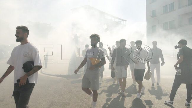 Desde el mediodía, los alrededores del Murube comenzaron a teñirse de blanco y negro. Familias, peñas locales, grupos de jóvenes y veteranos seguidores del club caballa se fueron congregando con camisetas, bufandas y bombos, listos para brindar el ya tradicional recibimiento a los jugadores.