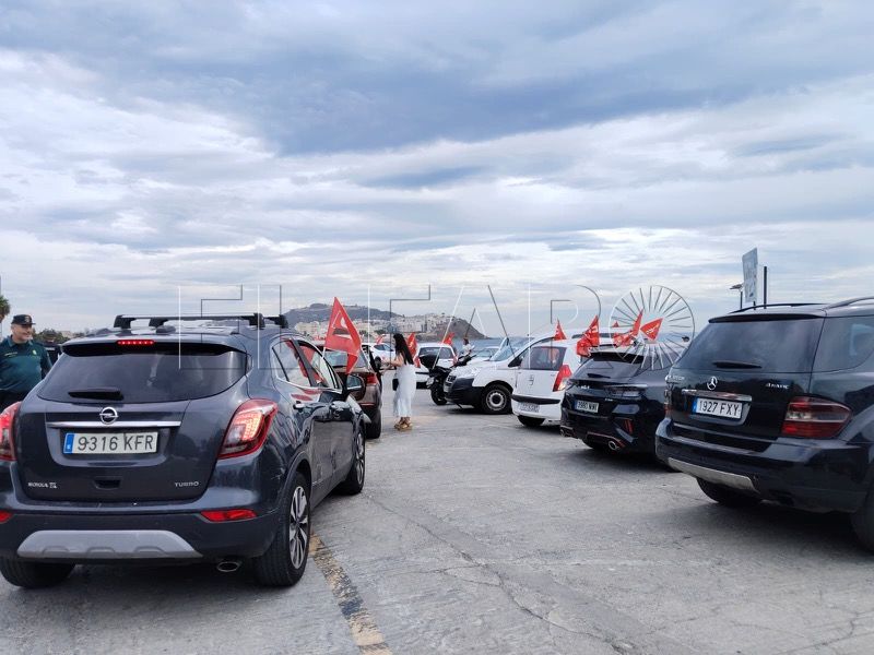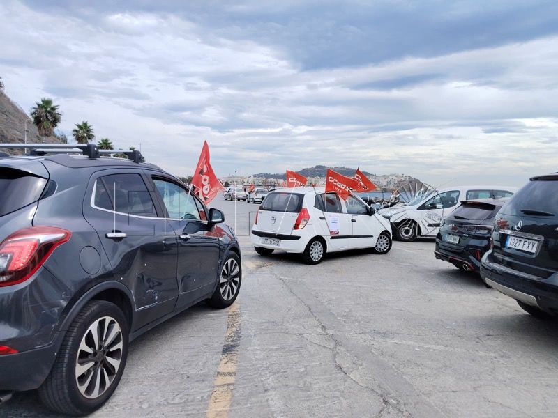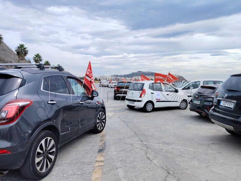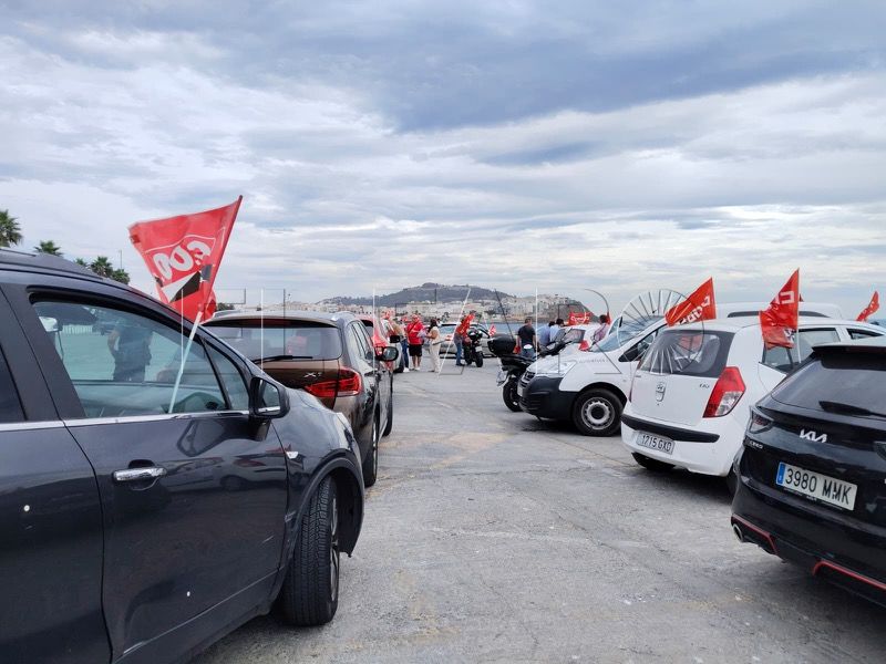 CCOO y UGT han pasado a la acción este martes. Después del anuncio oficial de dos concentraciones, los sindicatos han salido a tomar las calles de Ceuta. Montados en coche, en torno a una veintena de vehículos ha emprendido el itinerario programado.