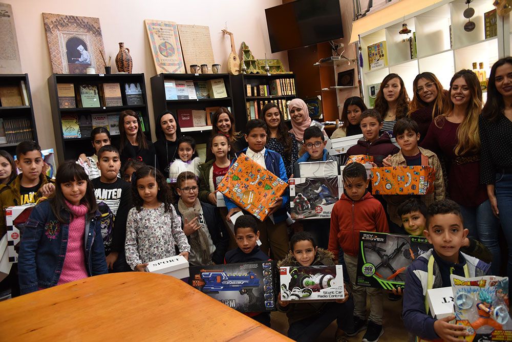 Las instalaciones del centro cultural Al Idrissi han acogido la entrega de juguetes y calzados que han sido donados por la Fundación La Caixa, como colofón al taller Integra2 de la asociación DIGMUN para menores sin escolarizar.