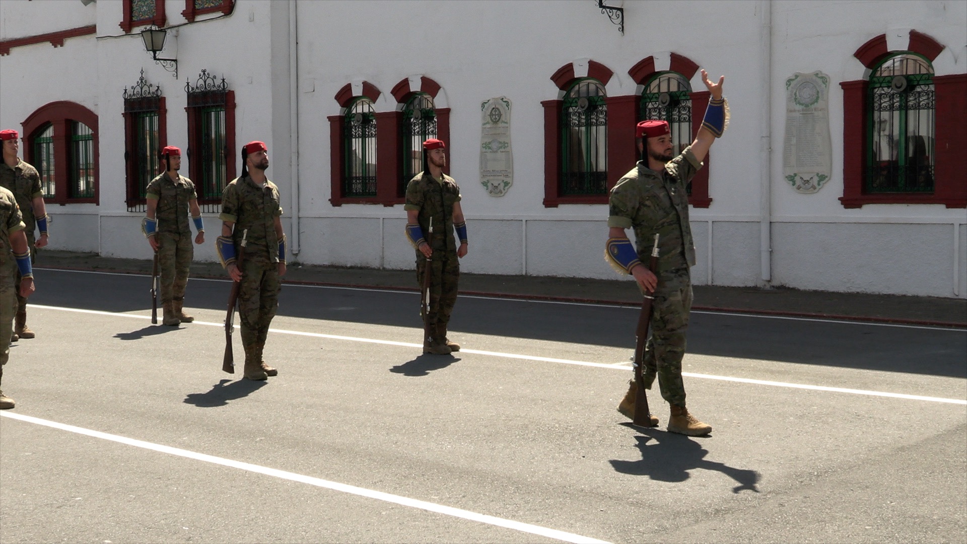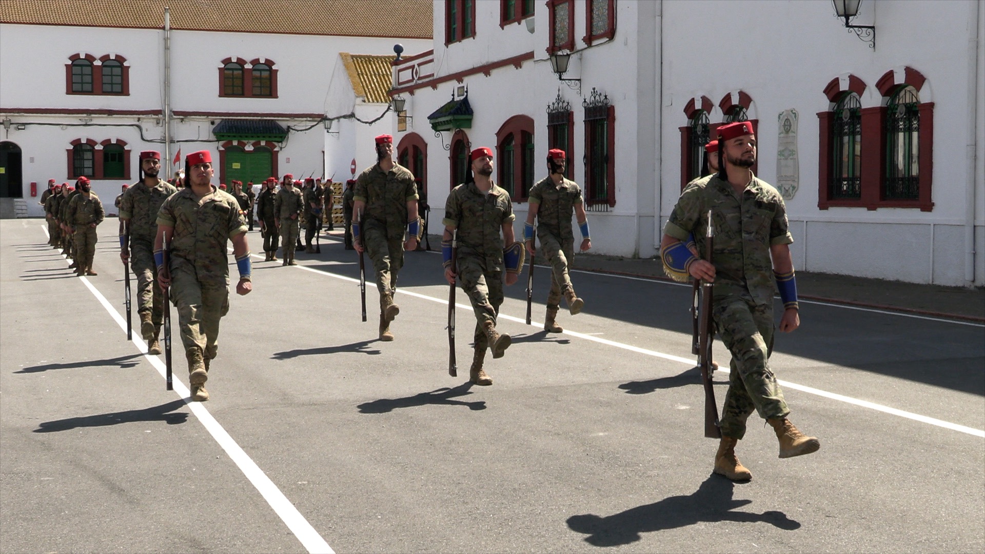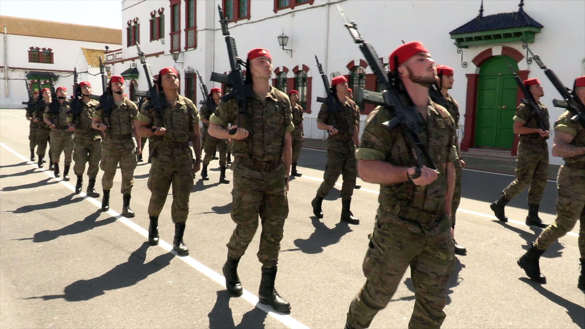 En estas semanas previas, los Regulares que participan en el desfile dedican buena parte del tiempo a ensayar esta salida. Aunque, como bien indica el capitán Lamolda, jefe de compañía, “nuestra principal misión es prepararnos para el combate o para aquella misión que se nos asigne”.