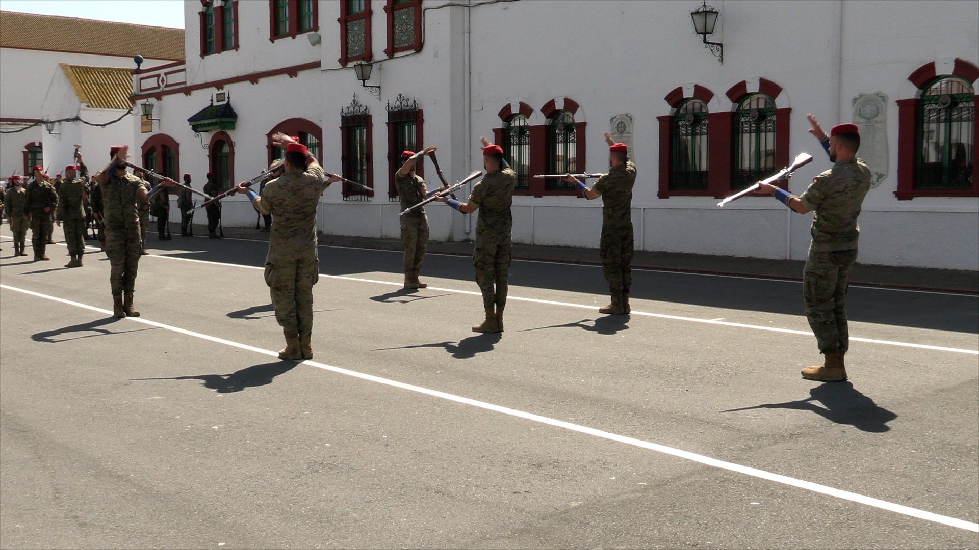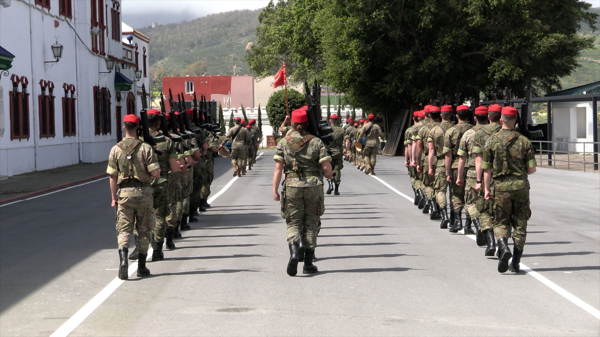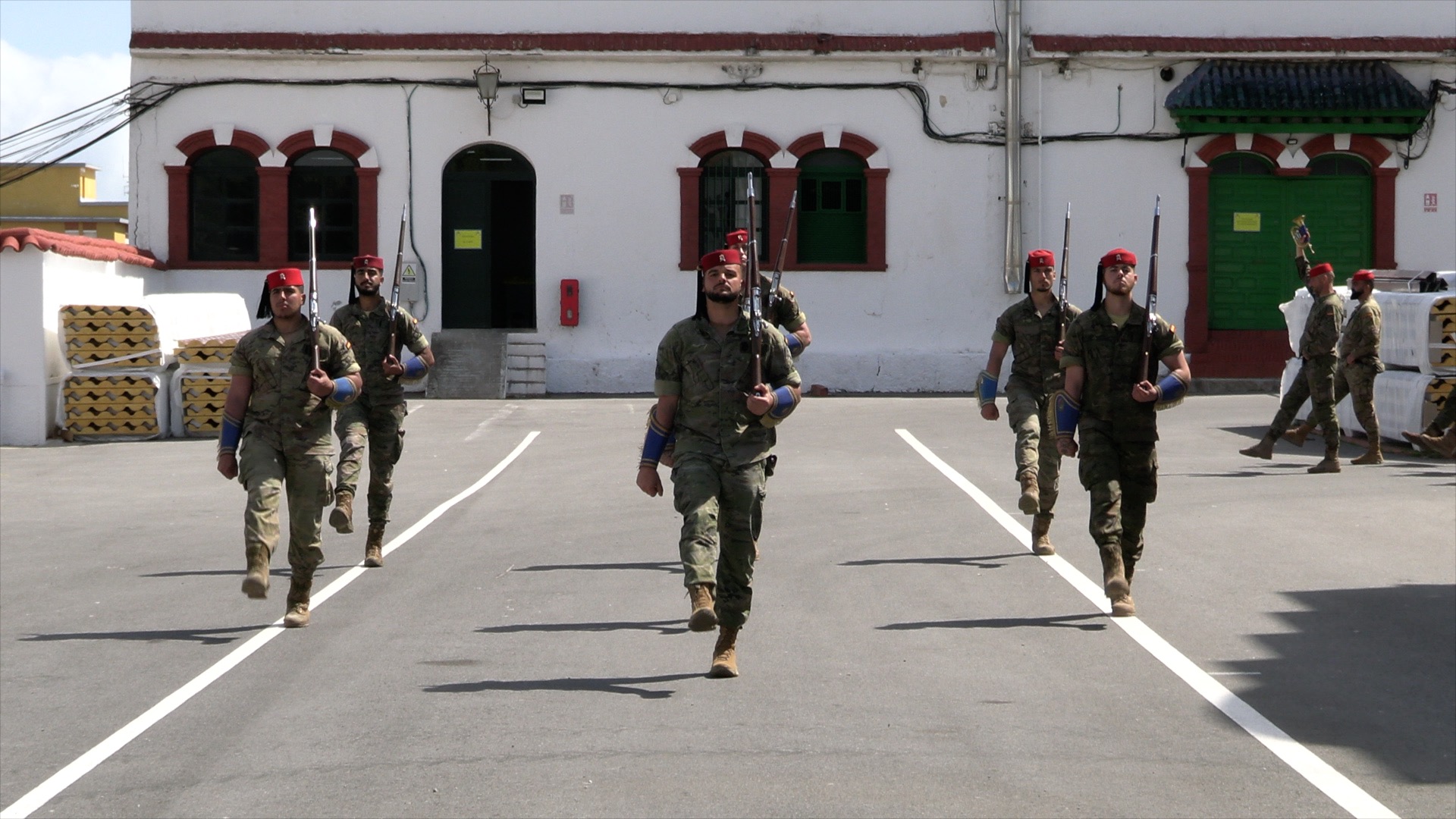 En estas semanas previas, los Regulares que participan en el desfile dedican buena parte del tiempo a ensayar esta salida. Aunque, como bien indica el capitán Lamolda, jefe de compañía, “nuestra principal misión es prepararnos para el combate o para aquella misión que se nos asigne”.