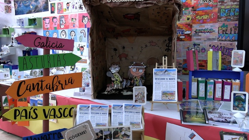 En una zona del colegio se ha preparado una zona expositiva donde se muestran los trabajos realizados por el alumnado a lo largo de este curso escolar.