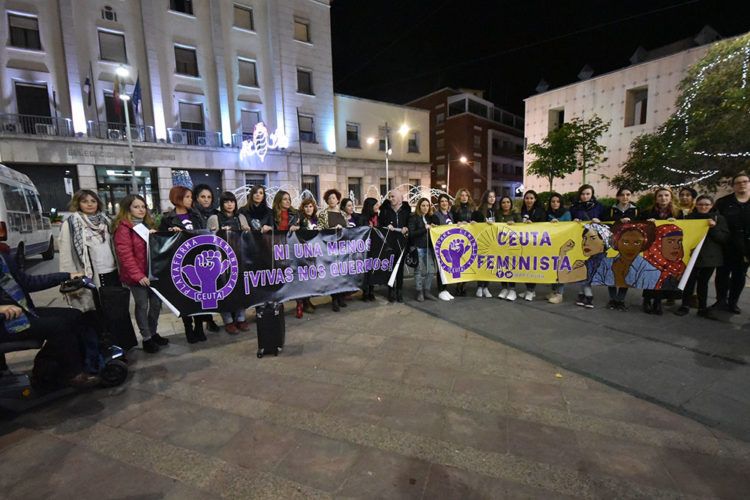 La Plataforma Feminista de Ceuta se concentró la tarde de este miércoles en la plaza de los Reyes, en defensa de las cuatro mujeres que trabajaron como jornaleras en la Finca Doñana de Almonte y denunciaron una situación de abuso sexual.