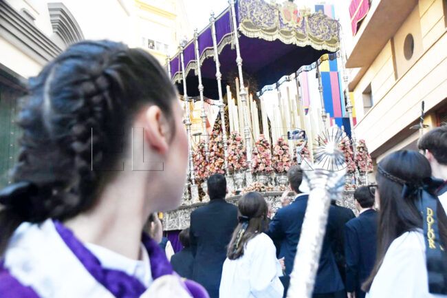 La Virgen del Mayor Dolor, como cada año, volvió a conmover corazones. Mecida con dulzura, su palio avanzó por las calles más céntricas de la ciudad mientras se elevaban oraciones, saetas y lágrimas desde los balcones y aceras.