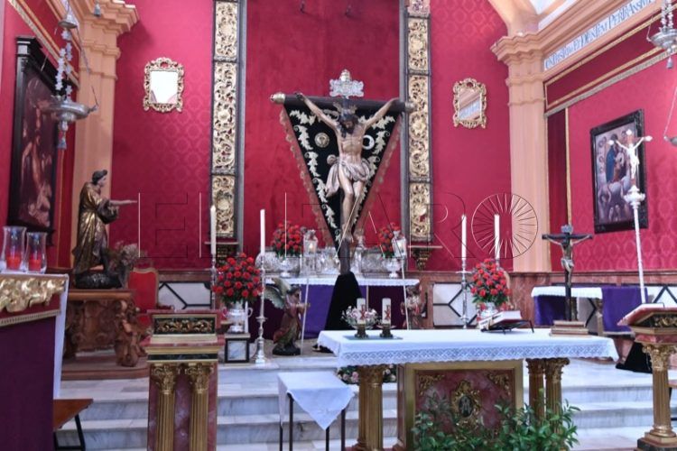 Para que todo esté listo, los miembros de la Cofradía han estado trabajando durante estas jornadas en el montaje de su altar, que ya se puede ver en su parroquia.