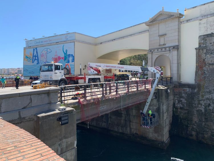 Fueron operarios de Acemsa los que instalaron el pasado verano esta malla de seguridad y sujeción, a modo de protección, para evitar la caída de cascotes ante el riesgo existente de que pudieran desplomarse sobre las embarcaciones que solían pasar. Mientras que fue la Ciudad Autónoma la que aseguró que, una vez terminada la temporada estival, se llevaría a cabo la sustitución de dicho tramo de tubería.