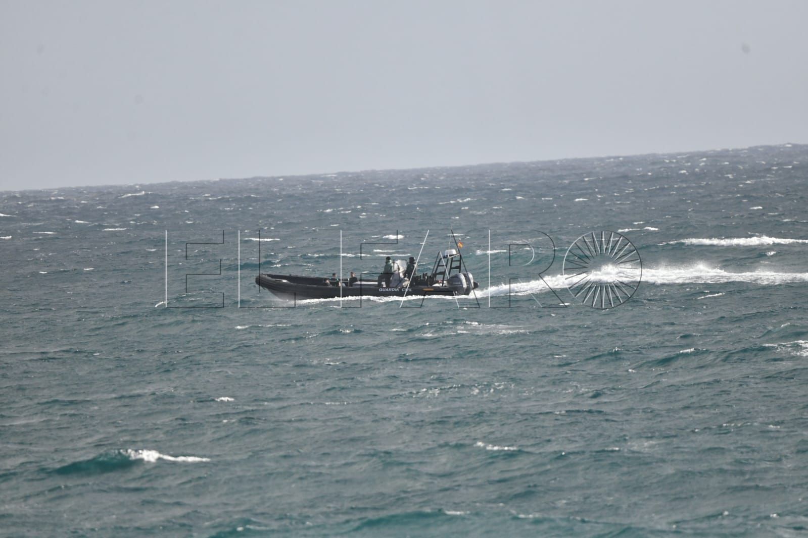 El trabajo se lleva a cabo el límite, con agentes en el mar, pero también patrullas que, prismáticos en mano, controlan las zonas más próximas al espigón del Tarajal en donde está produciéndose la mayor presión en estos días.