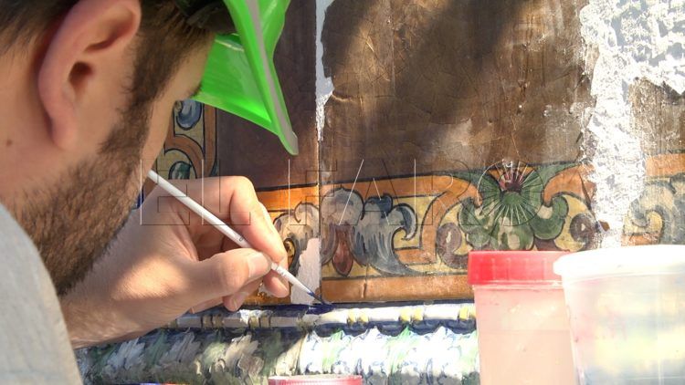 Desde que se instaló en los años 60 en la ciudad, procedente de un taller sevillano, el retablo apenas se ha restaurado y la imagen presenta las huellas de su proximidad con el mar. “Está muy cercano a la playa y la sal y la humedad son muy dañinas porque rompe el esmalte de los azulejos”, explica el restaurador de la obra, José Miguel Valderas.