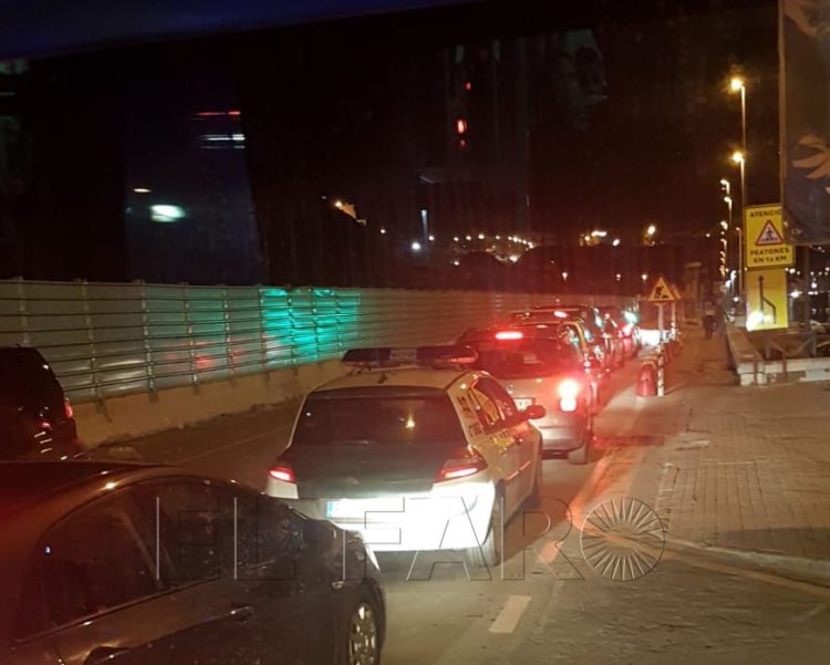 Los coches-patera, al desalojar la zona de embolsamiento, colapsan la carretera nacional que conduce al país vecino, generando filas que alcanzan la Almadraba. A esa afluencia de vehículos se une que la calzada se ha visto reducida temporalmente por las obras de ampliación. Un cuello de botella que cuenta con un semáforo cuyo tiempo de duración contribuye aún más a ese desorden, siempre según la versión de los conductores.