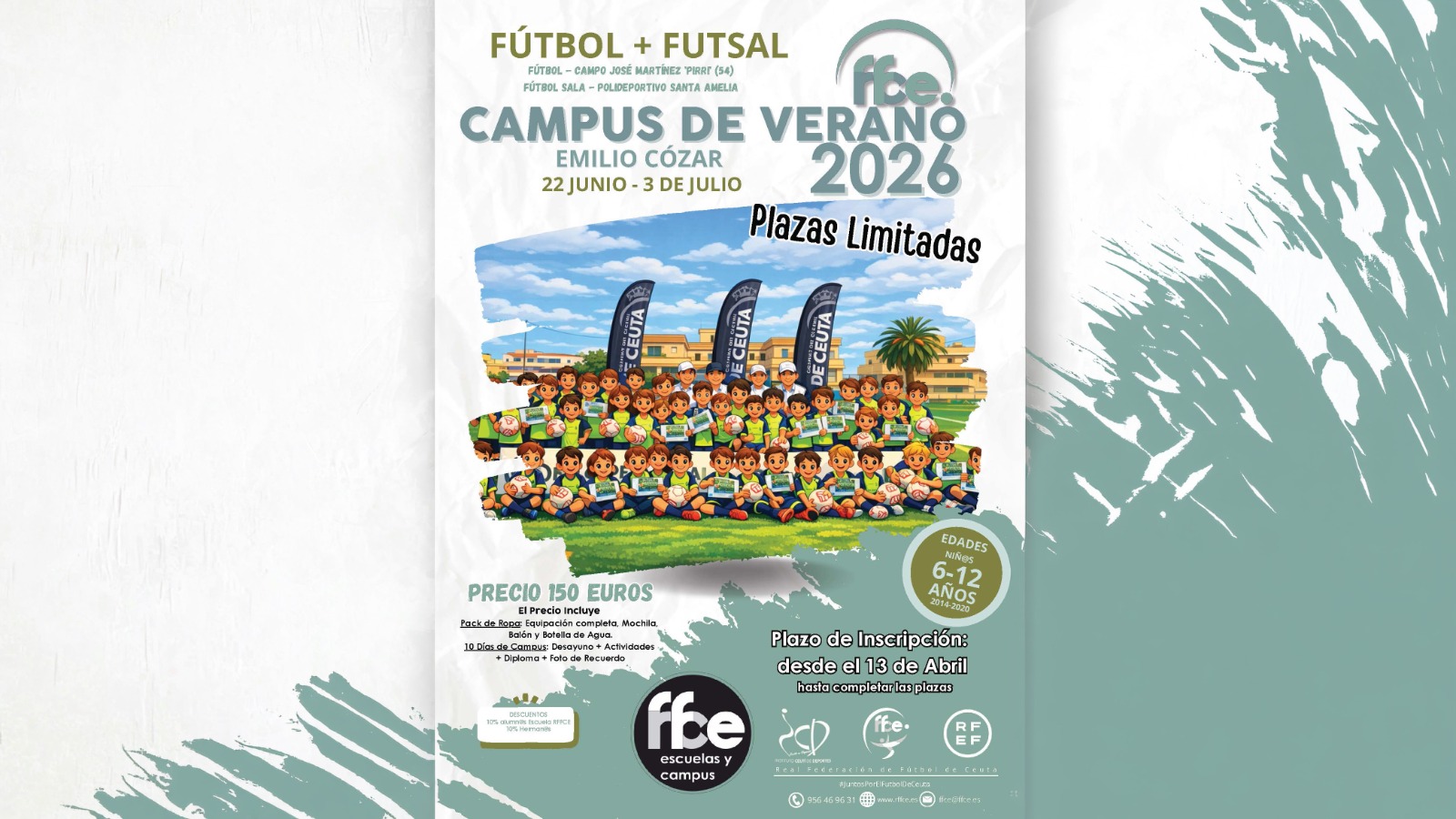 La Real Federación de Fútbol de Ceuta ha abierto el plazo de inscripción para su Campus de Verano 2026, que se celebrará del 22 de junio al 3 de julio en el Campo José Martínez ‘Pirri’ y en el Polideportivo Santa Amelia.