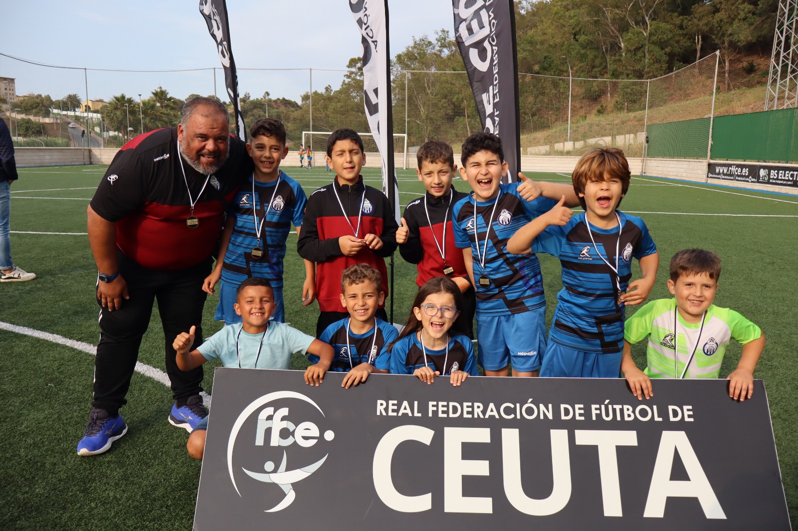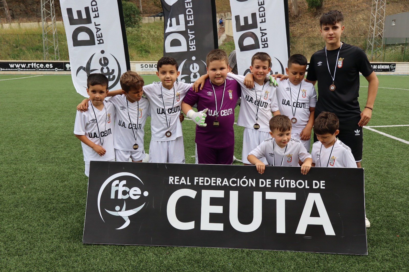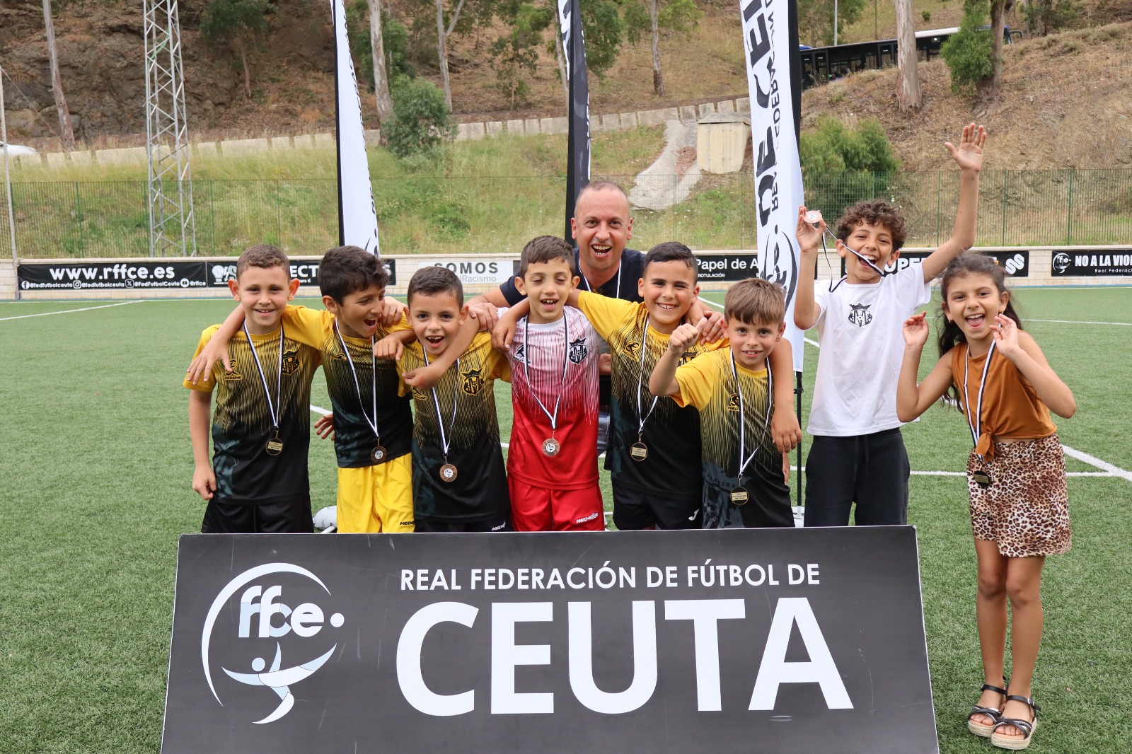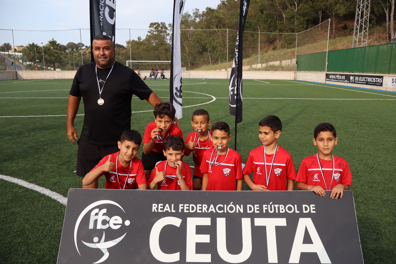 La Real Federación de Fútbol de Ceuta ha clausurado la temporada en la categoría Prebenjamín, aprovechando la celebración de la última jornada del Play-off por el título y Fase de Continuación A de la Liga de Fútbol 8, que se ha disputado en la tarde de hoy martes 3 de junio en los campos ‘Ayman Aomar’ y ‘Tuhami Al Lal’.