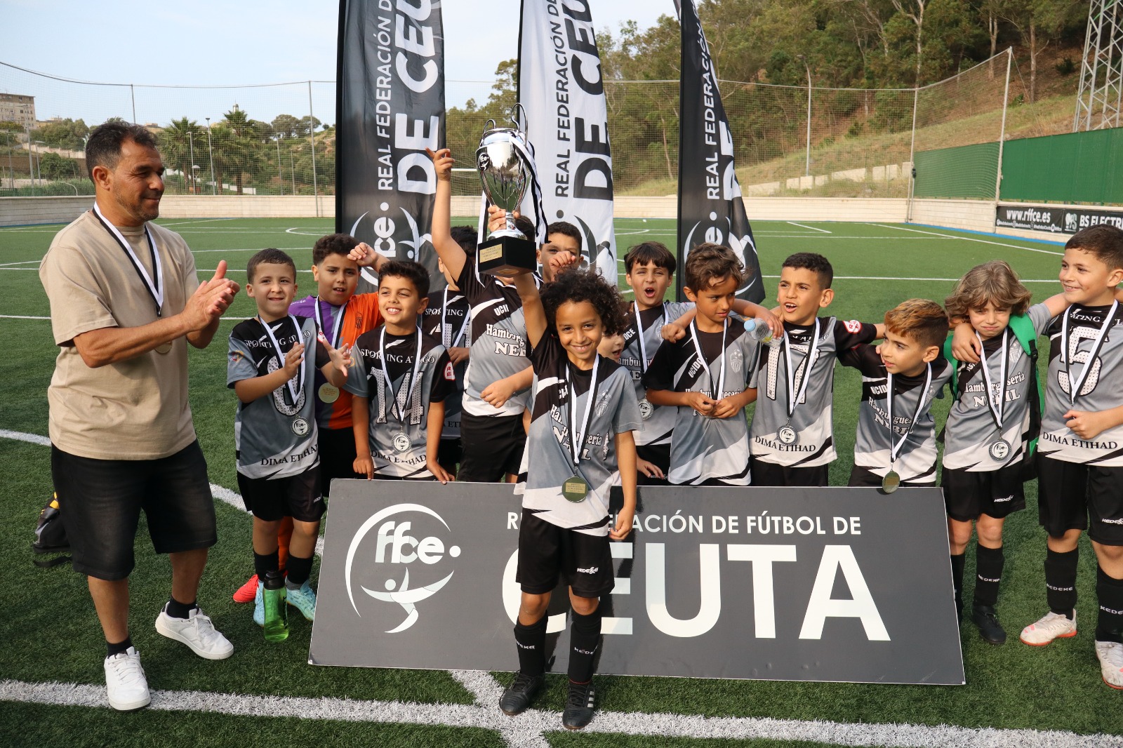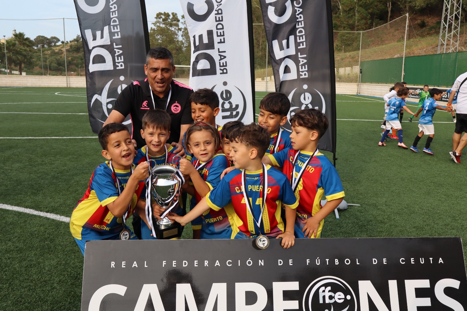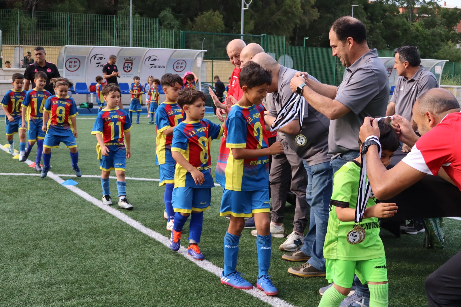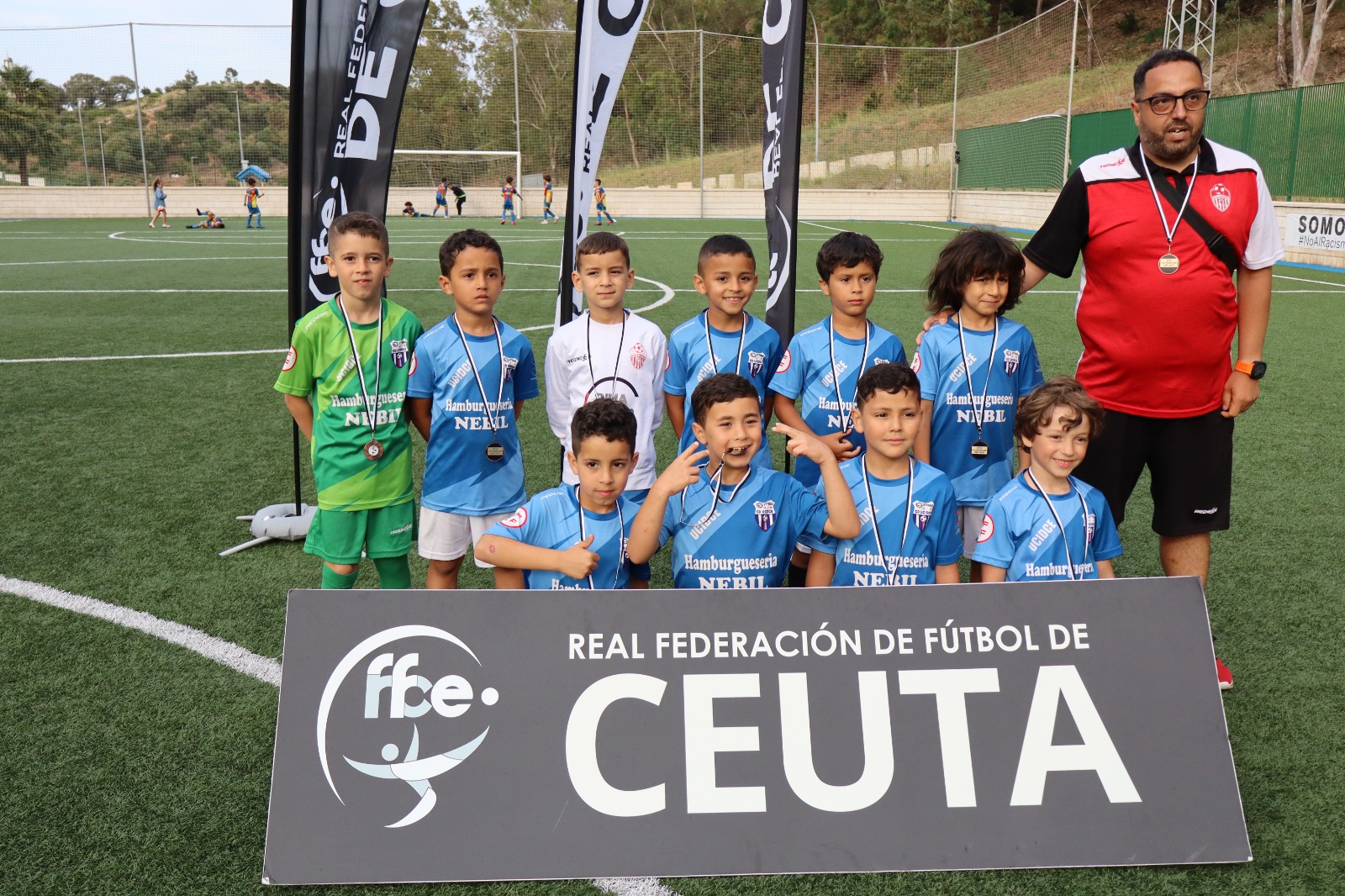 La Real Federación de Fútbol de Ceuta ha clausurado la temporada en la categoría Prebenjamín, aprovechando la celebración de la última jornada del Play-off por el título y Fase de Continuación A de la Liga de Fútbol 8, que se ha disputado en la tarde de hoy martes 3 de junio en los campos ‘Ayman Aomar’ y ‘Tuhami Al Lal’.