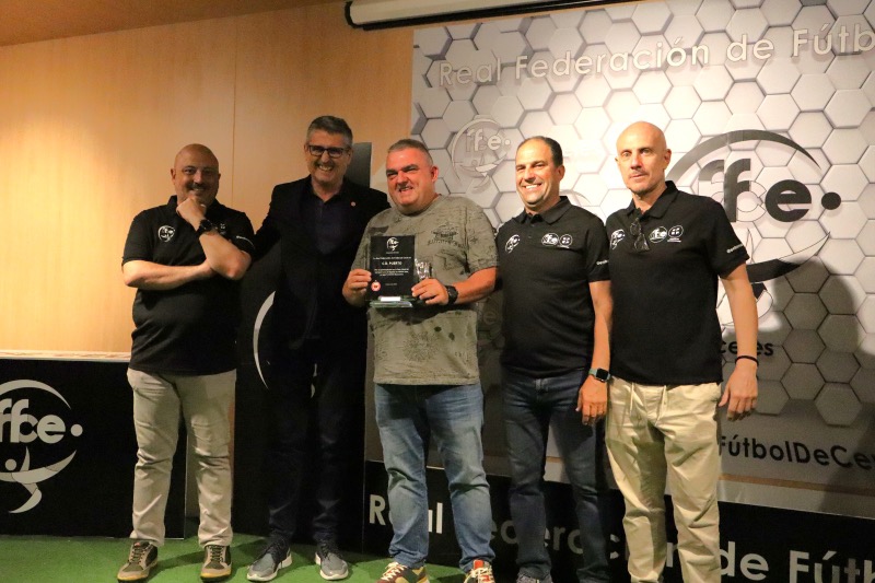 El acto ha contado con la presencia del presidente de la RFFCE, Antonio García Gaona, acompañado por José Garrido (director deportivo de fútbol), Dani Olsson (director de Escuelas), José Carlos Ayala ‘Chito’ (director deportivo de fútbol sala), Iván Chaves (presidente del Comité de Entrenadores) y Francisco Galán ‘Paquirri’, entrenador del equipo.