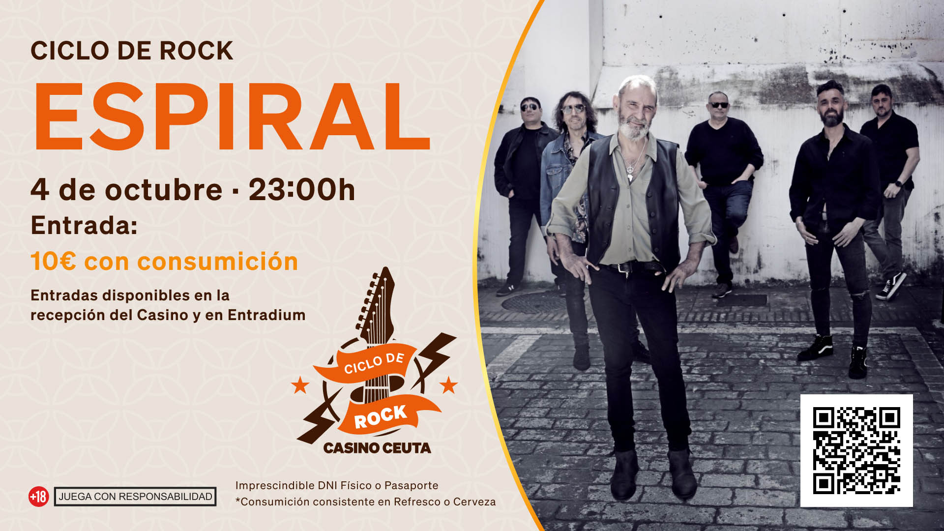 El Casino de Ceuta se prepara para una noche inolvidable con el regreso de la energía del rock en directo. El próximo sábado 4 de octubre, a las 23:00 horas, el escenario del Casino acogerá el esperado concierto de Espiral, una de las bandas más representativas del panorama rock nacional, dentro del Ciclo Rock 2025. Este evento consolida al Casino como uno de los espacios culturales más dinámicos y comprometidos con la música en vivo en la ciudad autónoma.