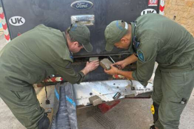 Fueron localizados 20 kilos de hachís repartidos en bloques, que estaban ocultos en los soportes inferiores del vehículo con matrícula del Reino Unido y conducido por un ciudadano de origen italiano de 40 años.