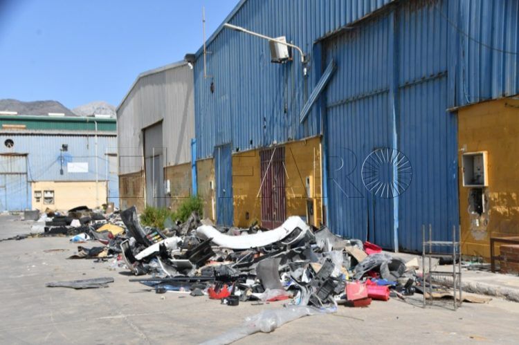 Muebles, chatarra, piezas de vehículos, basura... sortean las distintas calles del polígono del Tarajal, aquel que antaño se convirtió en escenario de compras y ventas millonarias pero que ahora persiste con el funcionamiento de unas pocas naves