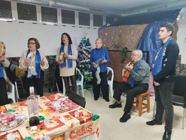 El encuentro, que ha tomado forma de polvoroná, se ha presentado como una oportunidad idónea para escuchar en vivo y en directo al coro de San José. El grupo se ha personado en el edificio para amenizar el evento.