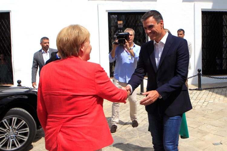 Sánchez ha adquirido ese compromiso en una rueda de prensa conjunta con la canciller alemana, Angela Merkel, después de que ambos hayan compartido un almuerzo de trabajo en el Palacio de los Guzmanes, sede de la Fundación Casa Medina Sidonia, en Sanlúcar de Barrameda (Cádiz), donde han abordado la política migratoria, un asunto prioritario en la agenda de ambos gobernantes.