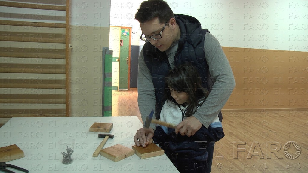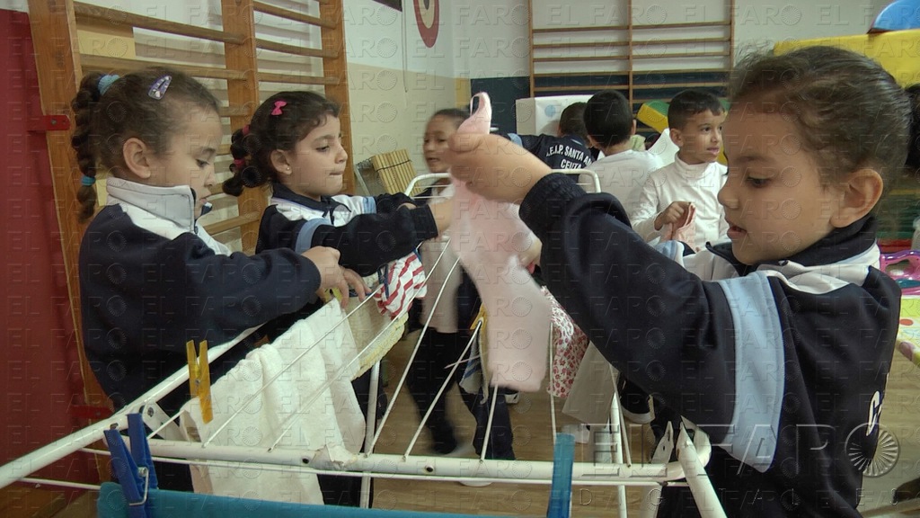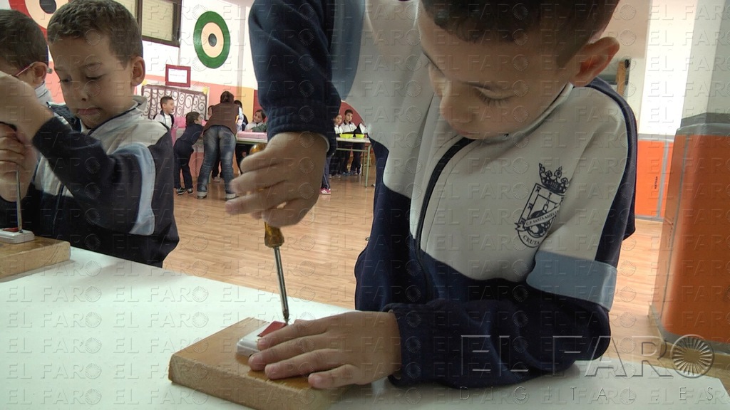 La actividad consiste en una serie de talleres que van desde el cuidado de un bebé, poner la mesa, hacer la cama, colgar un cuadro o desatornillar un enchufe. “Los alumnos van pasando por todas las actividades. Interviene la totalidad del centro, desde Infantil a 6º”.