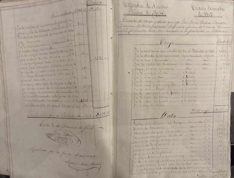 Desde hacía unos años, la Cofradía de Nuestra Señora de África se había revitalizado. Ya restablecida, su Junta de Gobierno trata de sanearla económicamente intentando recobrar valores pertenecientes a la Cofradía depositados en láminas y créditos contra el Estado.
