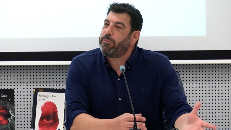 Santiago Díaz se ha encontrado con una sala abarrotada de público. No faltaban los libros entre sus manos para que el autor plasmara una firma en ellos ni las ganas de poder preguntarle sobre sus personajes.